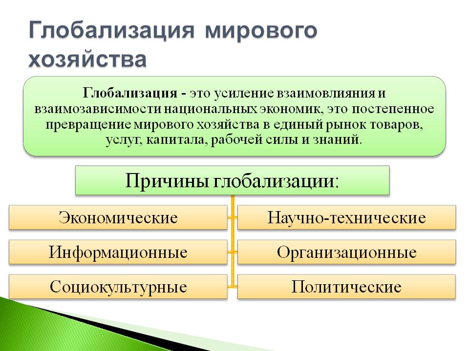 Глобализация — это процесс усиления взаимосвязи и взаимозависимости различных стран и их экономик; Этот процесс включает в себя рост международной торговли, расширение инвестиционных потоков, массовое распространение технологий и культуры, а также интеграцию финансовых рынков. Именно благодаря глобализации экономика стала более открытой, конкурентоориентированной, динамичной.