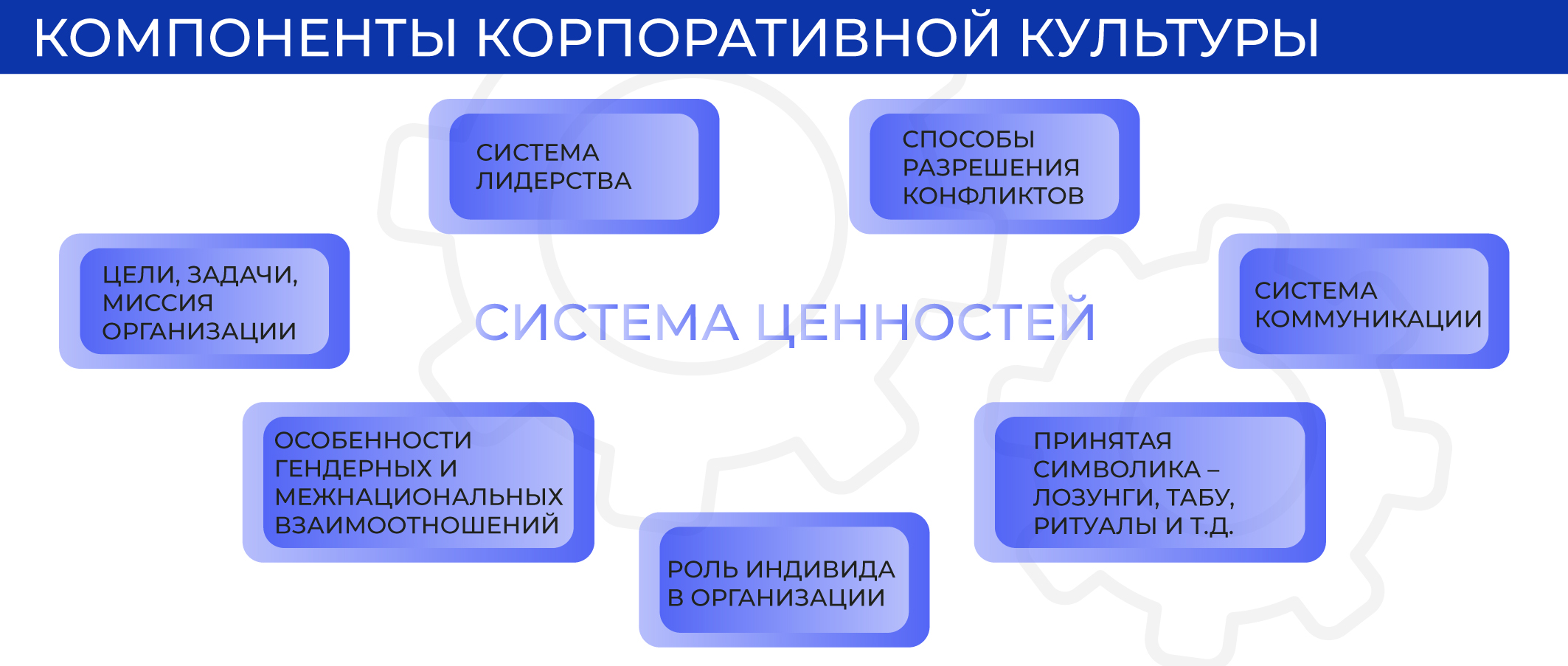 Это включает формирование универсальных ценностей, приемлемых для всех сотрудников вне зависимости от их национальности, а также создание политики уважения и взаимопонимания внутри команды.