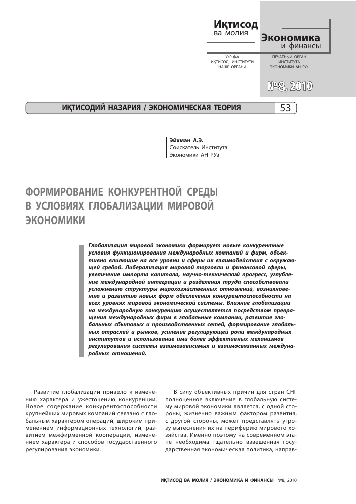 Будущее конкуренции в условиях глобализации